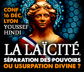 L’équipe d’E&R Lyon accueillera Youssef Hindi le vendredi 16 décembre 2016 à 20h à Lyon pour une conférence intitulée « La laïcité, séparation des pouvoirs ou usurpation divine ? ».