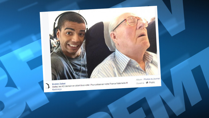 La cour d’appel de Paris a confirmé la condamnation de Brahim Zaibat, qui avait publié en décembre 2015, à la veille du second tour des régionales, un selfie avec Jean-Marie Le Pen endormi dans un avion, bouche légèrement ouverte, accompagné du commentaire :