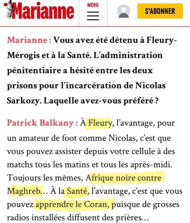 Pour Nicolas Sarkozy, après une première nuit durant laquelle trouver le sommeil sera peut-être difficile, son quotidien ordinaire de détenu commencera au petit déjeuner. À cet instant de la journée, nul plateau-repas. Le pain et la confiture, qu’il faut mettre de côté, sont habituellement livrés la veille, à 18h30 avec le repas du soir. D’emblée s’impose la nécessité d’user de la petite plaque chauffante mise à sa disposition dans sa cellule et de cantiner, c’est-à-dire acheter des denrées proposées à la vente par l’établissement. Car il est interdit d’introduire de la nourriture depuis l’extérieur en détention. On se souvient pourtant qu’Isabelle Balkany ne s’en était pas privée quand son mari était à la Santé. (Le Figaro)