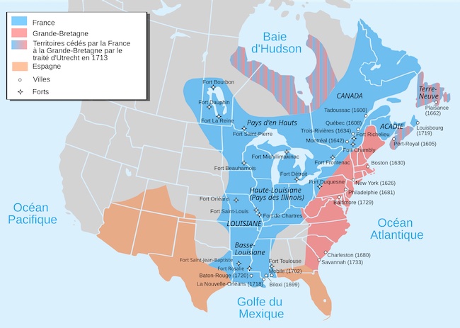 Au début du règne de Louis XV, la France possédait pas moins de 8 000 000 de km2 en Amérique entre ses territoires du Canada et de la Louisiane, soit quinze fois le territoire de la France métropolitaine.