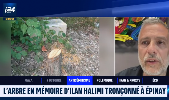 Le 14 août 2025, quelqu’un a scié, de manière assez parfaite selon la photo, donc avec une tronçonneuse, donc avec du bruit, donc de manière pas discrète, l’arbre – un olivier – qui « rendait » hommage à Ilan Halimi, lâchement assassiné par une bande de bras cassés de banlieue en 2006 : le gang des barbares.