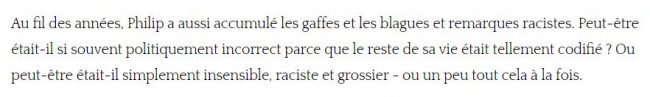 Passons au racisme. Là, il semble que le Philip s’en est donné à cœur joie.