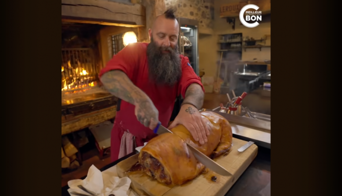 Il ne faut surtout pas que notre Sardine nationale se perde dans la France profonde, elle risquerait de faire un AVC. Surtout en Ariège, chez ce biker tradi qui découpe un croustillant cochon de lait farci…