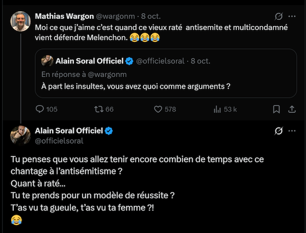 Et au moins c’est juste.— Alain Soral Officiel (@officielsoral) October 9, 2025