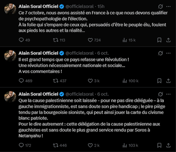 — Alain Soral Officiel (@officielsoral) October 9, 2025
