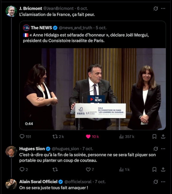 Tu es de quelle confession déjà ?— Alain Soral Officiel (@officielsoral) October 10, 2025